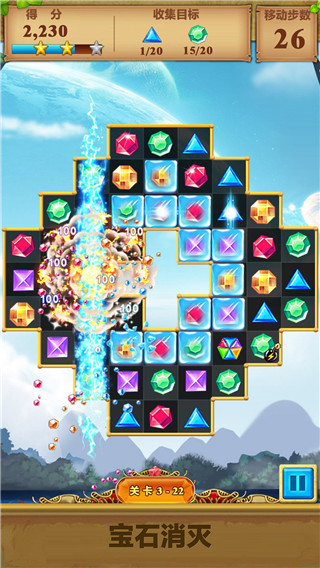 4、超精美的各色宝石,超炫酷的游戏场景,超爽快的消除体验