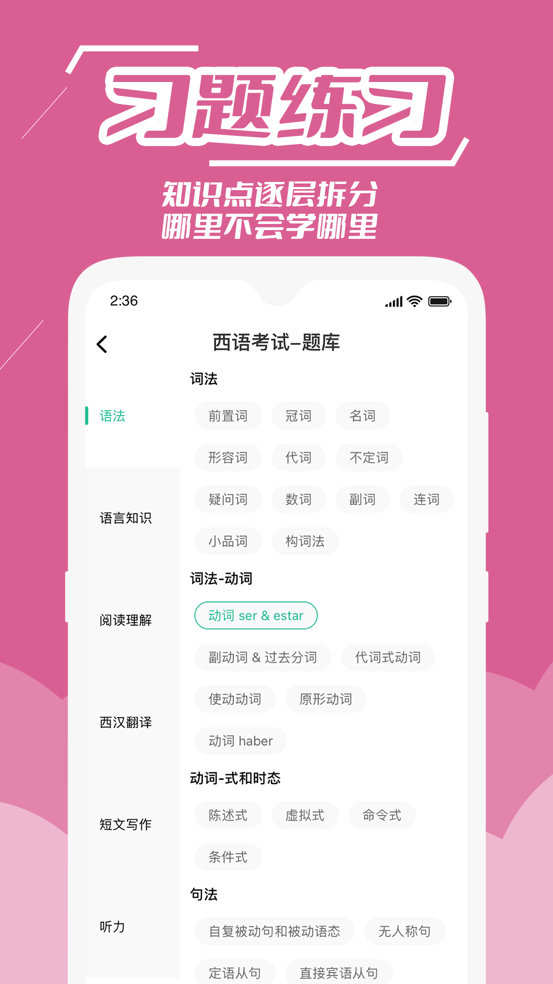 4、支持考点练题方式,根据不同考点的突破需求能够在此进行考点练习
