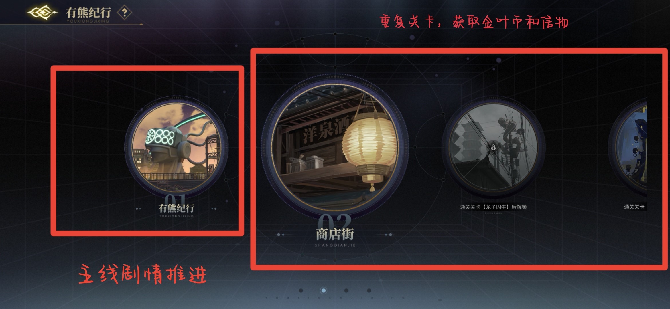 主线:在有熊纪行的主线中,路线的所有节点事件都是必参与项(经过即可),主要目的为推进版本剧情发展。主线:在有熊纪行的主线中,路线的所有节点事件都是必参与项(经过即可),主要目的为推进版本剧情发展。