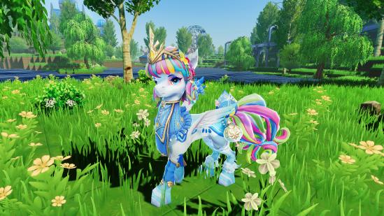 童话小马,它可是目前最抢手的起源级新宠物,身上散发着耀眼的五彩光芒,看起来十分华丽和高贵。童话小马作为远程型宠物适合进行远距离的攻击,它的骑乘技能——彩虹领域十分厉害,同时还带有冰元素精通的被动,带上它出战一定能够所向披靡!喜欢童话小马的探寻者可千万不要错过啦!