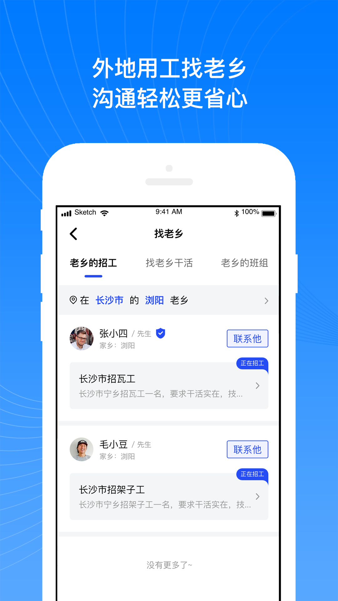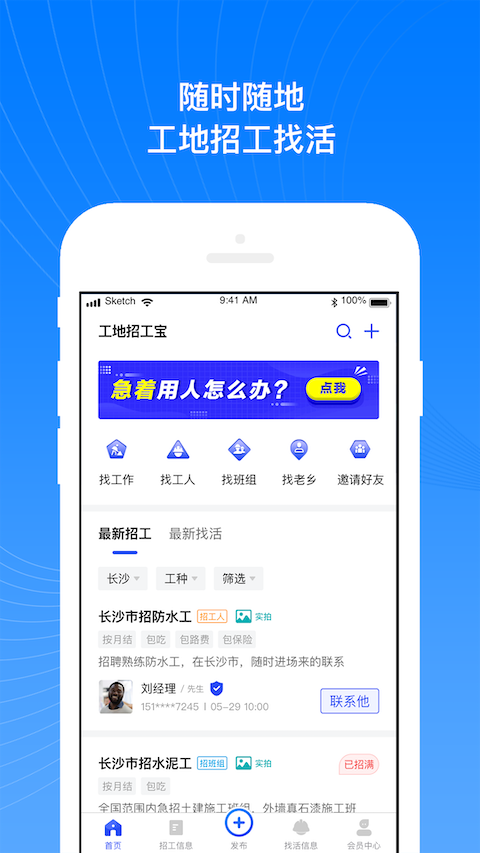 这是一个专业服务建筑劳务工作的招聘资源整合平台,完美解决工地招工找活难的行业痛点,经由精准匹配迅速帮助工友招到人、找到活,突破传统老乡带的单一模式.