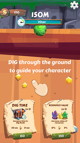 这款游戏里玩家将模拟成为一个矿工,地底下埋藏着丰富大量的宝藏,等待着你去发掘,游戏画风是可爱的,在挖掘的宝藏的同时,要小心地雷哦,如果挖到地雷那就完蛋啦,想要挖到好东西,快来升级自己的装备吧