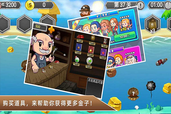 前往世界各地进行淘金!你将从地底获取到各种矿石,希望你能够大赚一笔!不同的宝物具有不同的价值,去寻找那些价值连城的宝贝吧