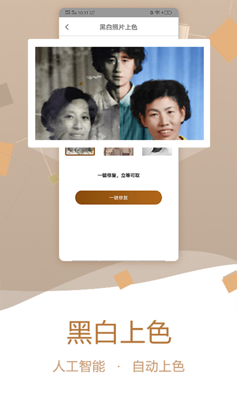 老旧照片修复是一款非常神奇的照片处理工具,可以帮用户把老照片变成就跟刚拍的照片一样崭新好看。