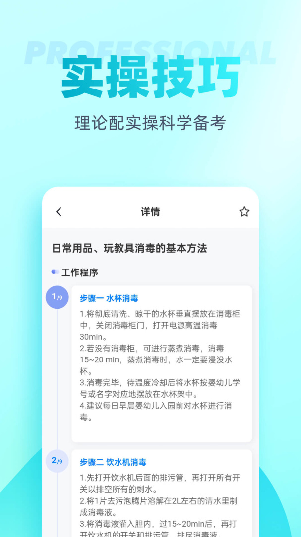 4、保育员题库内含考点练习,全国通用卷以及地区卷模拟练习,以及按照固定考试比重的随机式的抽题的真题考场,成绩单实时记录考试数据,一点一滴的反馈考生近期学习状态以及自我正确率的提升,大大的给予考生通过考试的信心