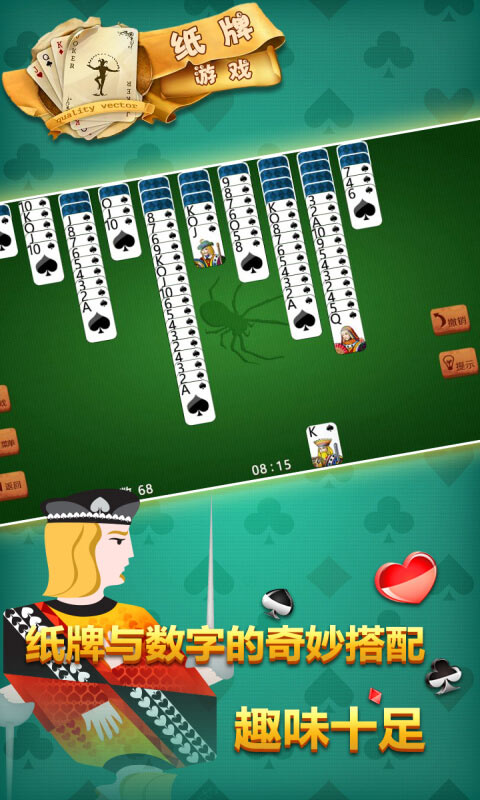 经典的单机蜘蛛纸牌手机游戏来啦,原汁原味玩法,在手机上随意开启娱乐局,经典的蜘蛛纸牌、趣味空挡接龙,一比一还原电脑端游戏,回顾经典童年游戏