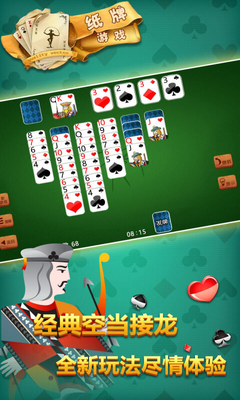 纸牌游戏是一款手机上可以随时随地进行的休闲游戏,无需额外的游戏设备或场地,只需要打开手机就能开始游戏。