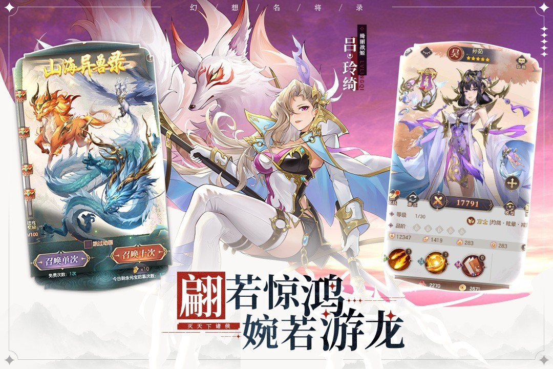 高颜值,真放置,后台战斗策略手游 人间如梦,一尊还酹江月。幻想三国之争华丽登场! 唯美国风放置策略手游《幻想名将录》定义全新三国世界。登陆即领50抽,豪华福利资源满仓;自选橙将,搭建满配阵容,多流派策略智斗;唯美立绘,精致场景沉浸式体验;轻松放置,随玩随停,护肝不氪也能称霸天下;红颜系统,神器养成,惊喜连连畅玩不停!