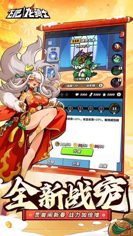 3、各种不同的资源可以自由升级龙之飞翔等级,等级的提高可以带来更大的伤害,享受新的玩法