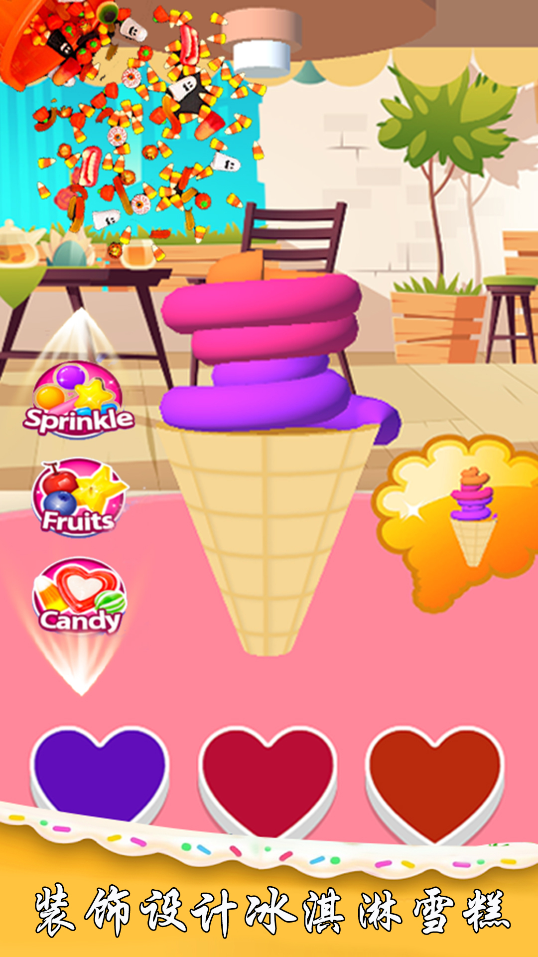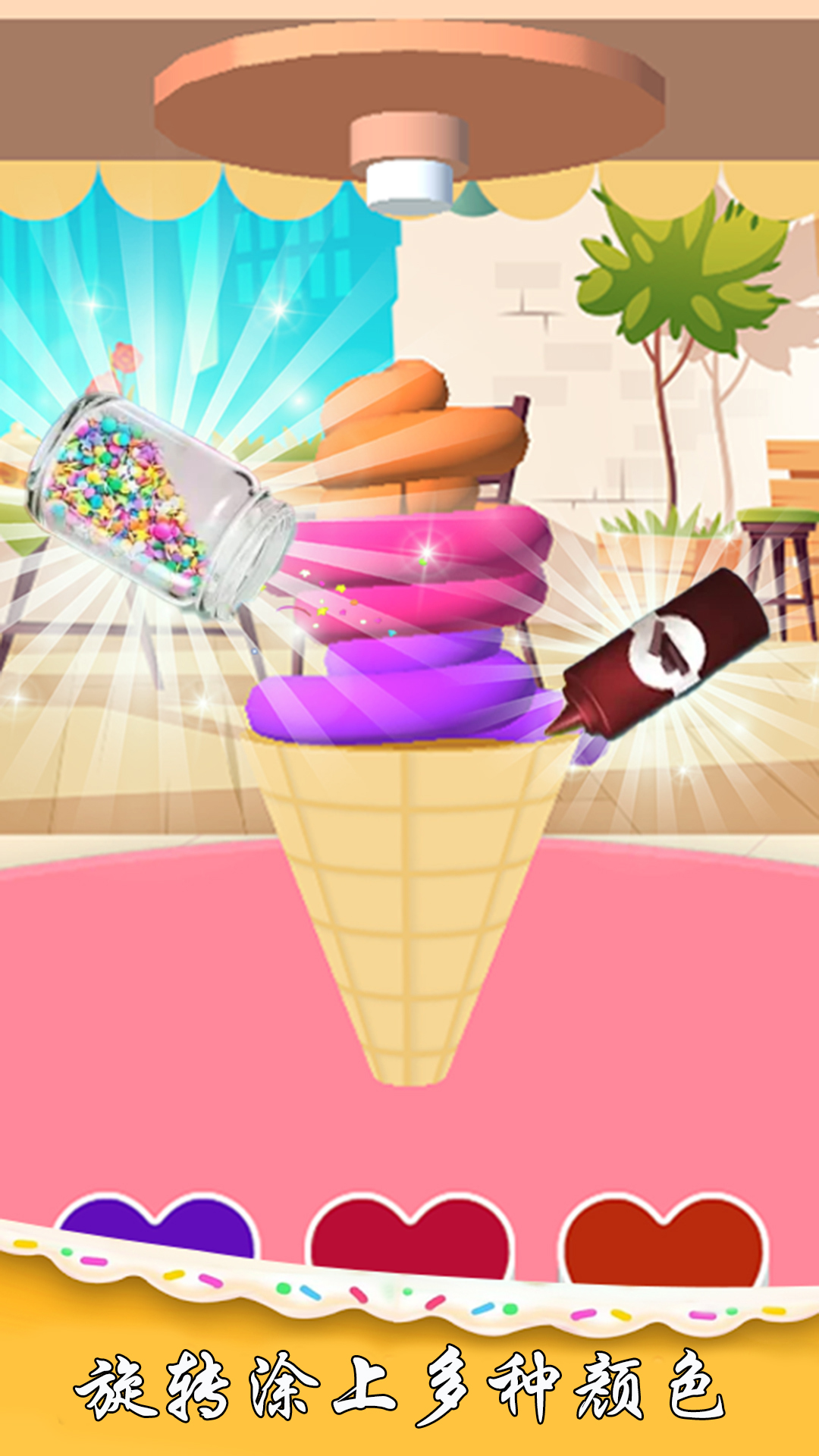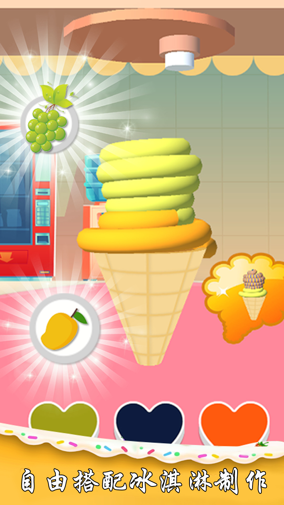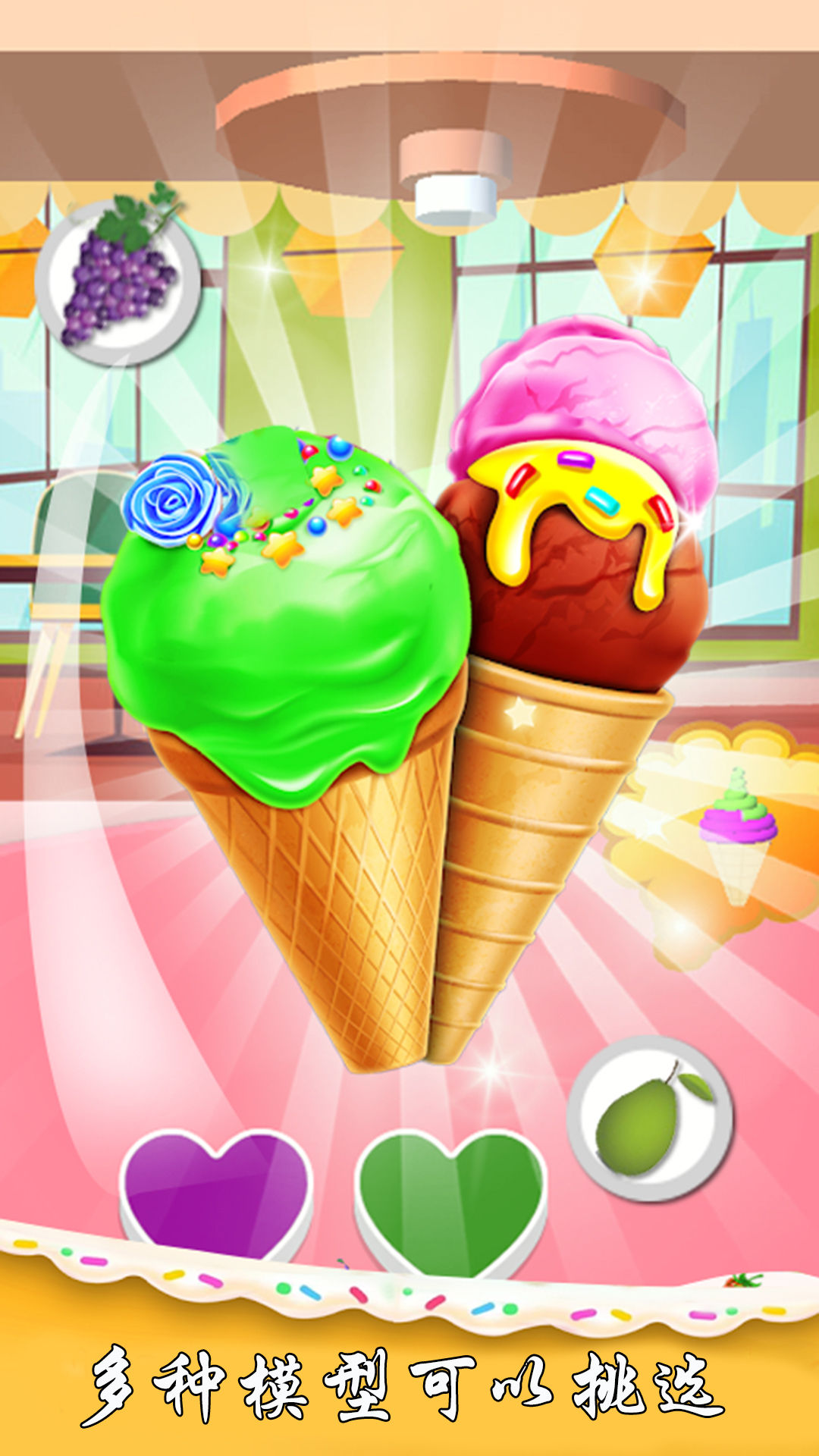 提供了多种口味的冰淇淋,以及各式各样的配料和装饰物。玩家可以根据自己的喜好选择不同口味和添加配料,打造出独一无二的冰淇淋作品。