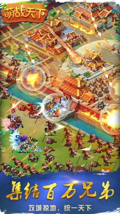 这是一个Q版风格建立在一个以三国世界观下的大型沙盒战争策略游戏。玩家将扮演三国时期的城主,生产战略资源、笼络名士猛将、征召百万雄兵参与到十三州的领土争夺中。