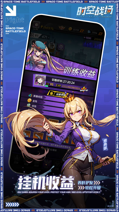《时空战场》是一款以近未来时代为背景的放置卡牌游戏。玩家将扮演未来世界的Manager,从多次元种类各异的异能者中招募成员,组建并训练自己的异能小队。在游戏中,玩家需要在异能都市各个强大势力所举办的异能者大赛中进行战斗,通过策略和技巧赢得胜利,最终获得荣耀与势力。无论是收集稀有异能者,还是制定战术,都将带给玩家独特的游戏体验。