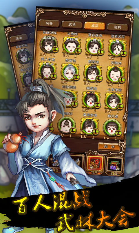 在这里玩家将进入到一个武侠世界中,然后可以从酒馆招募各位侠客,组建一支属于自己的队伍,一起在江湖中进行冒险探索,以及能够参加各种武林大会,在冒险的过程中该会遇到各种奇遇事件,游玩起来非常的有意思。