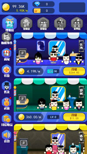 梦幻神剪是一款经典的模拟经营类游戏。在这款游戏中玩家将成为美容美发连锁店的老板,你的连锁店拥有理发、洗头、美甲等等业务,你只用设置好价格并为客人们提供满意的服务就可以了。游戏有多种玩法,你可以手动经营,活用策略实现赚钱,也可以一键挂机赚钱,一切都看你自己怎么选择了!