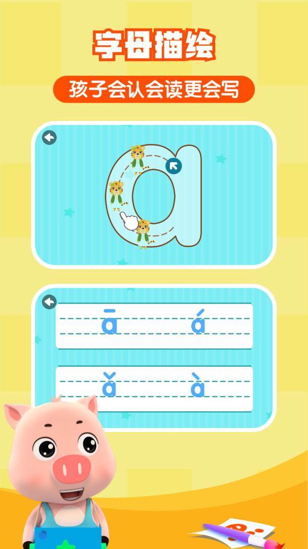 写:该环节主要引导孩子正确地书写拼音字母,包括笔顺和在拼音格中的位置。