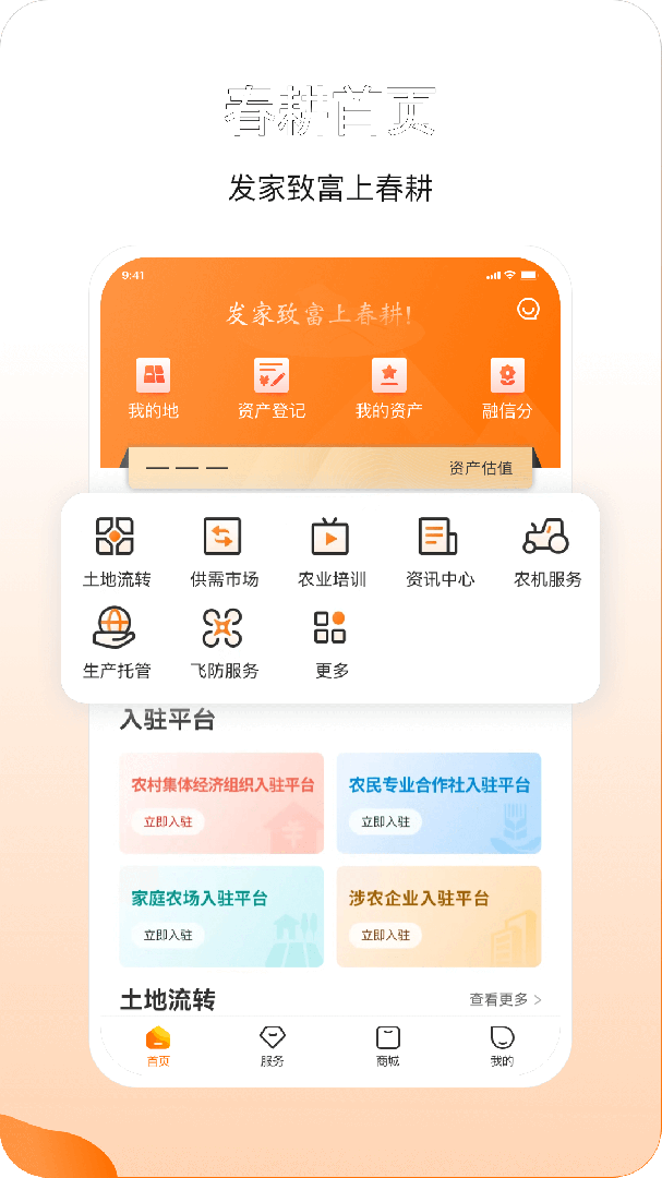 春耕是一款服务于农业生产者的互联网产品,秉承“为耕者谋利 为食者造福”的理念,为广大农业生产者打造多维度、高效率的农业互联网服务平台。主要提供土地流转撮合、动态资讯、服务推荐等多样化服务,以服务助力农业发展,以科技推动产业腾飞,做中国农村信息化的构建者、领航者、践行者!
