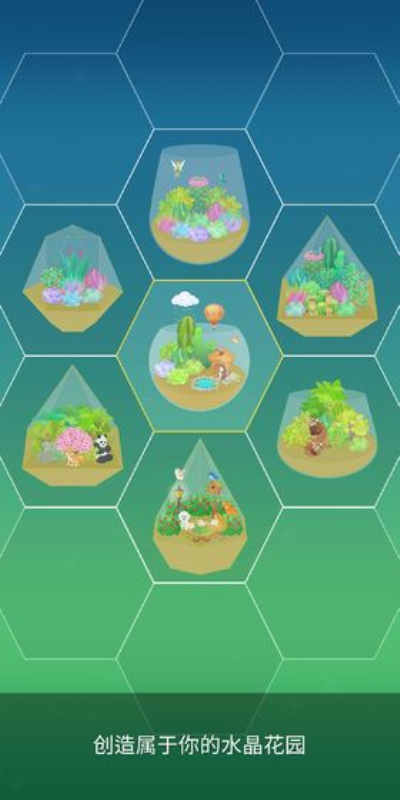 在''我的水晶花园'',你可以享受你的小型花园。创建不同样式的玻璃器皿,添加美丽的花园,设计你的专属花园。