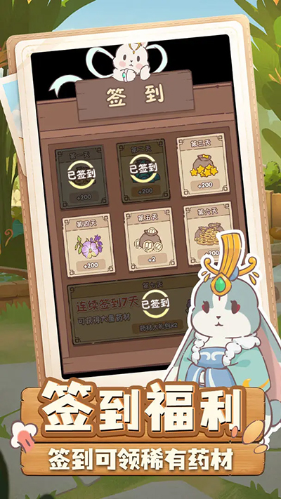 3、设置了签到活动和丰富的奖励系统,可以得到更多的星星,用于购买药材