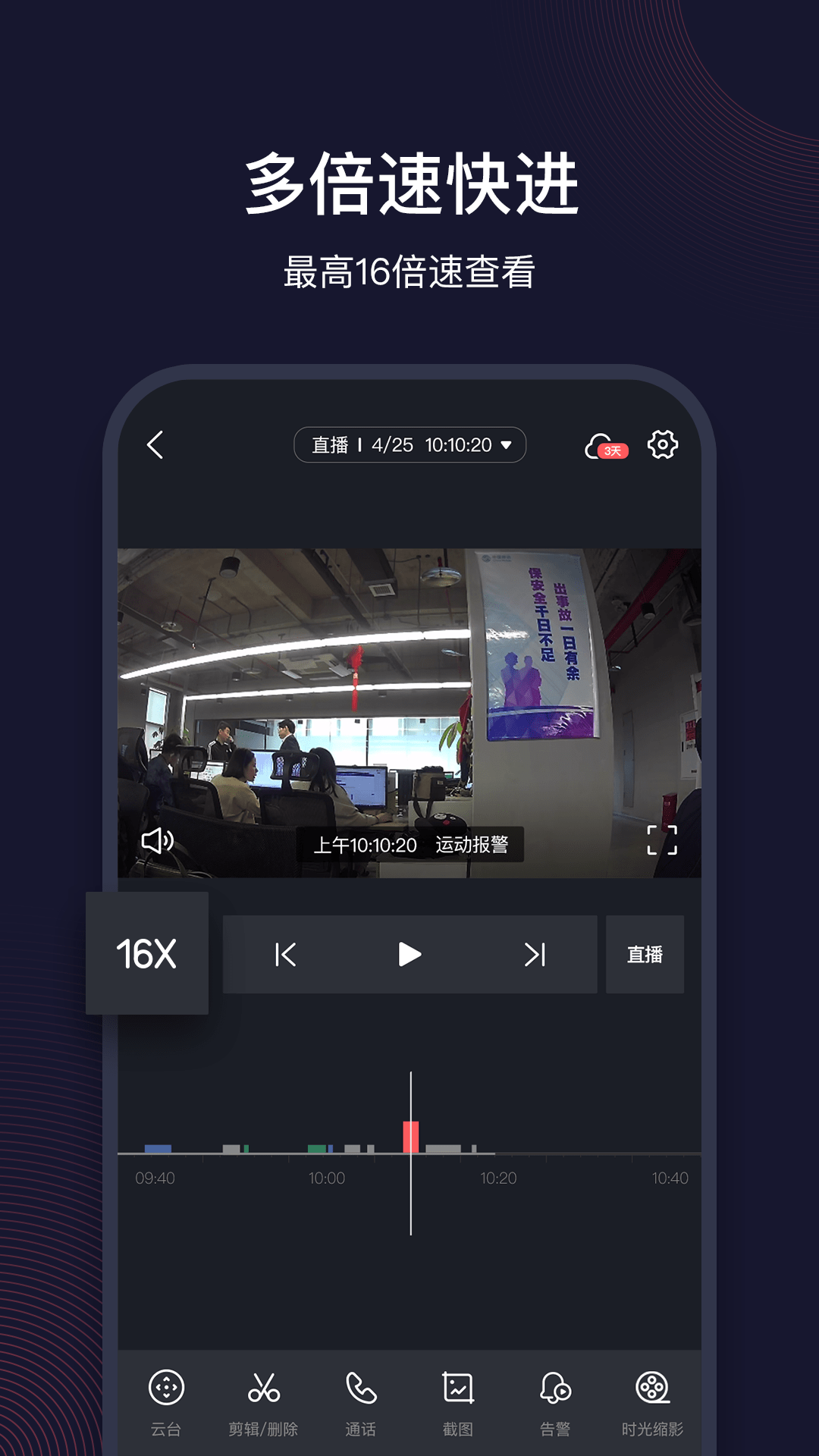 为用户提供实时视频、远程关爱、即时分享、云端存储等视频应用服务,您可以轻松查看家里、商铺、办公室等场所的实时视频、云端录像,您可以即时接收您所关注场所的异常事件报警通知,采取安全防护措施。