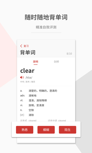 4、随时记忆单词,哪里不会点哪里,就有详细的单子注释,简明以及详细介绍任你选择查看。