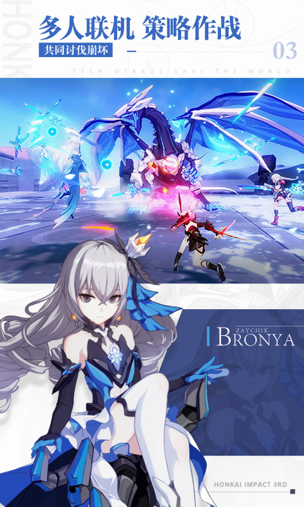 崩坏3是一款全新推出的二次元日系风格ARPG手游作品,在游戏之中玩家可以自由选择招募强大的舰娘进行战斗,全3D场景酷炫战斗风格,恢宏壮阔场景,带给玩家最极致震撼的游戏体验,真实震撼的3D打击感的操作感,让你根本停不下来!激情活力,丰富剧情,快来体验吧!