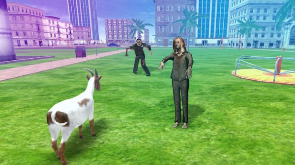 模拟山羊大战僵尸是一款经典的模拟类打僵尸游戏,所谓人不可貌相海不可斗量,想不到山羊都可以打僵尸吧,这款游戏就是模拟山羊大僵尸的游戏,在游戏中你是山羊,但是你不要把自己想成那种闲鱼般只会咩咩咩吃草的山羊,在这里你是一只拥有无穷破坏力的山羊,你在城市中疯狂的摧毁建筑物破坏,在城市中有很多的僵尸,碾碎这些弱者般的僵尸,用你锋利的羊角,杀掉所有的僵尸。