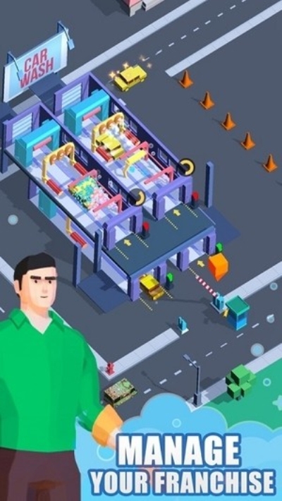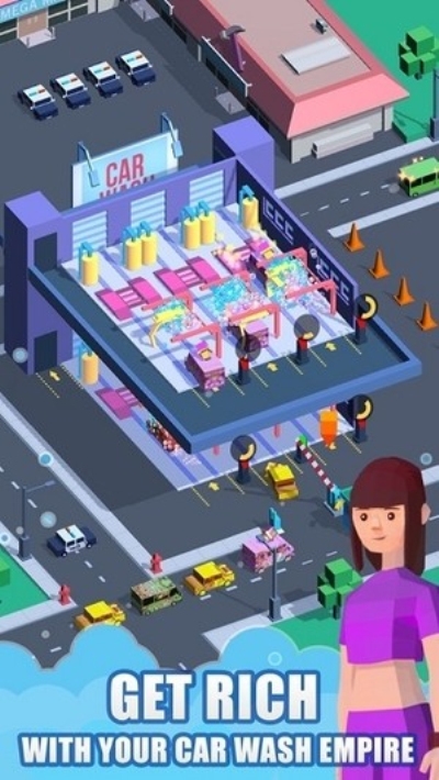 洗车帝国游戏中,你将在这扮演一名经验丰富的洗车经理,为了建立起你的强大洗车王国,前期你只能通过不断提高你的洗车速度,用赚来的金币去解锁更多高效洗车技术,扩大你的洗车车道棉结,解锁更多楼层,直到将你的洗车业务拓展到全球。