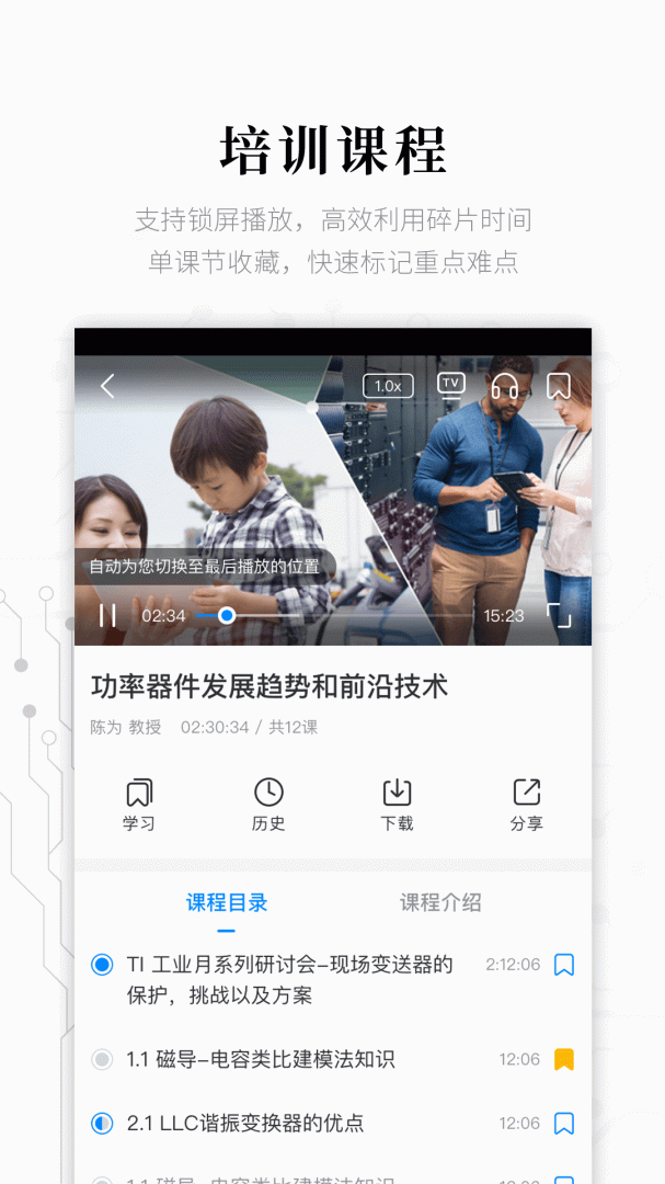 为你带来专业的培训,各类课程多,让你随时可以学习技术。软件适合在职的电子工程师,也适合在校学生