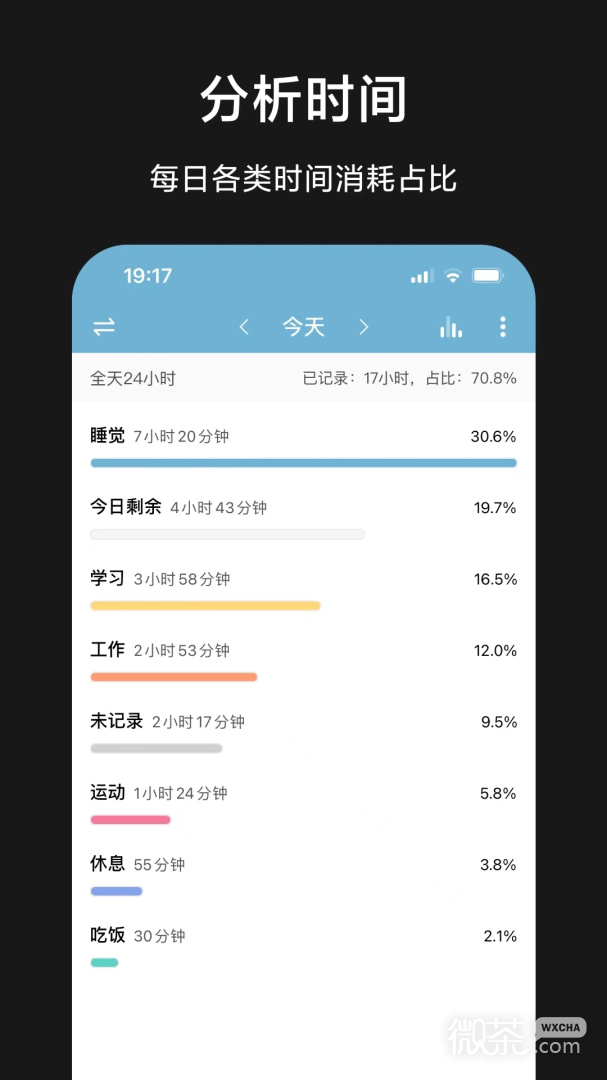 用户可以查看自己每天在各种事物上所花费的时间;