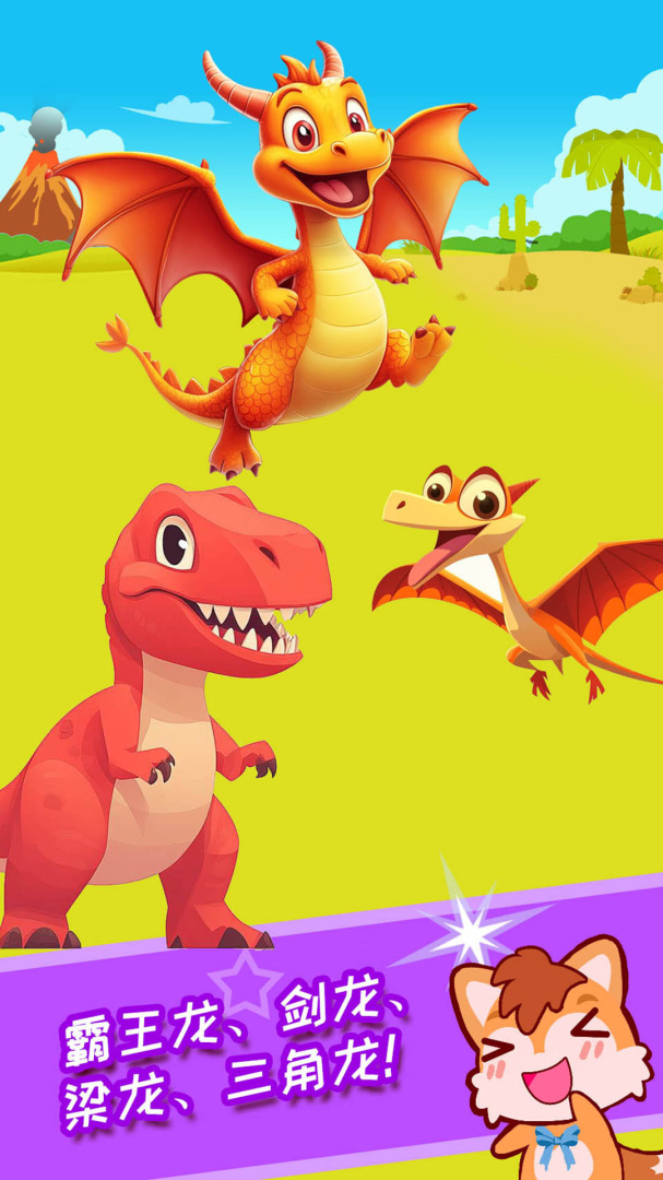 宝宝恐龙世界app应用有小朋友喜欢的霸王龙(暴龙)、上龙、棘龙、梁龙、雷龙、翼龙、鲨齿龙、三角龙、剑龙等。不见原恐龙可怕的模样,新创作的恐龙样子可爱动漫,深受小朋友的喜爱。
