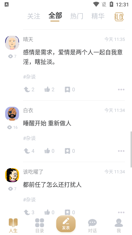 加上通过表达观点,直观的发现不同人的不同态度和观点,轻松遇见有内心共鸣、三观相同的知己。
