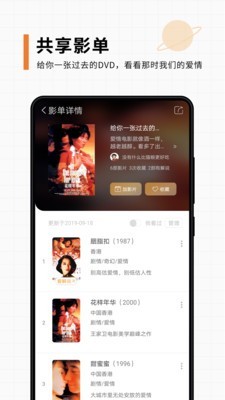 4、每一个用户的影单都是彰显着自己的品位和特色,你可以看到别人的专属影单,发现更多高质量的影片,也可以把自己的影单分享安利出来