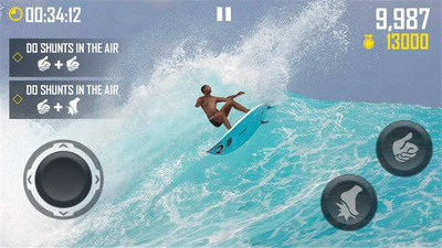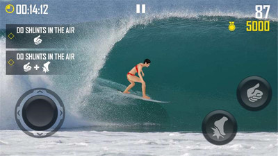 1、简洁清爽的界面风格,配上写实的冲浪角色,随时随地体验一把冲浪的刺激
