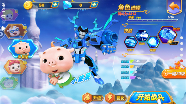 3、动画角色随意选择:游戏内可以操纵五灵卫(猪猪侠、菲菲、小呆呆、超人强、波比)与黑暗乔伊战斗