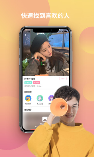 2、实时更新离你最近的ta,将附近的用户推送给你,方便线下见面