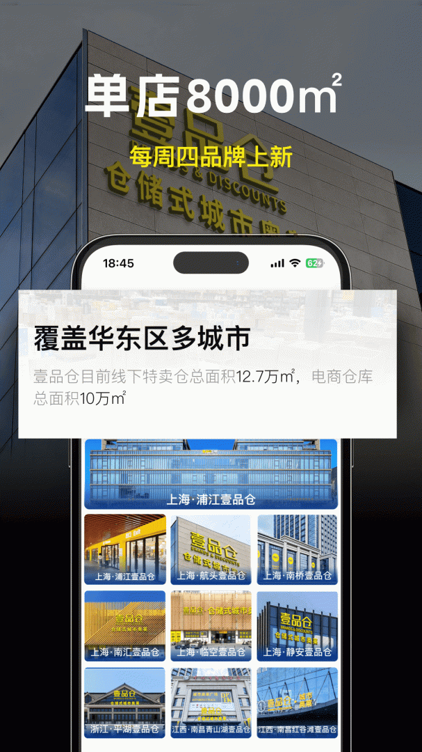 目前壹品仓在上海地区有五个线下门店,分别是: