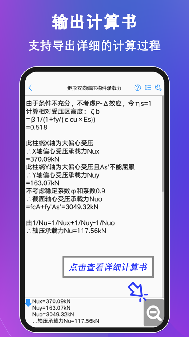 6、复制计算书功能:可以一键复制详细输出的计算结果。