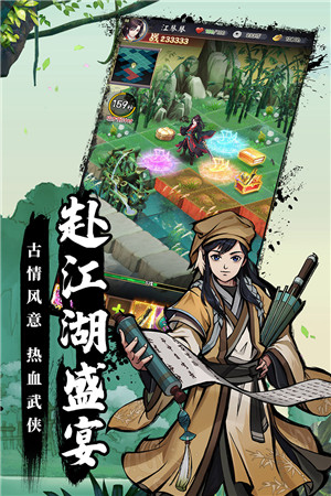 游戏以恢宏的大武侠为世界观,辅以国风动漫的美术基调,带领玩家走进古情风意的大美江湖,这款游戏极度考验策略,战前调整特性组合,快来体验