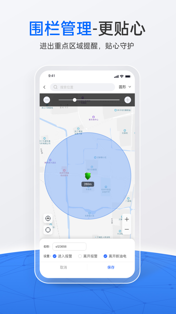软件拥有实时定位,车辆列表,多车查看,轨迹回放,电子围栏等诸多功能,可以帮助用户更轻松便捷掌握车辆动态
