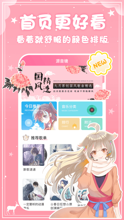 源音塘是一个以二次元音乐为主的全新音乐平台。包含了众多原创或翻唱的V家、ACG、国风、流行、广播剧、电音、说唱等风格的音乐类型。