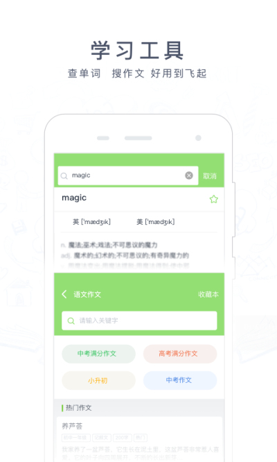 3.学习工具超好用:查单词,搜作文,好用到飞起~~