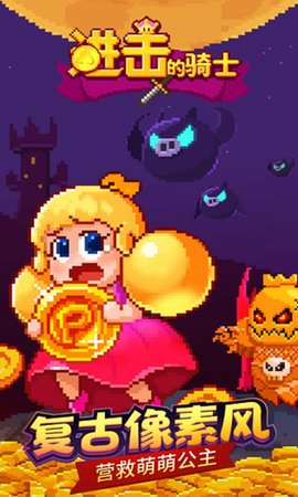 进击的骑士九游版是一款经典的像素画风搭配魔性的BGM,这款复古的挂机游戏会让你体验到早起古老的挂机游戏回忆,动动手就能获得金币,满足你花的爽的心愿!游戏以营救撒币王国的公主为背景,还在等什么“女神”正在等你出发!