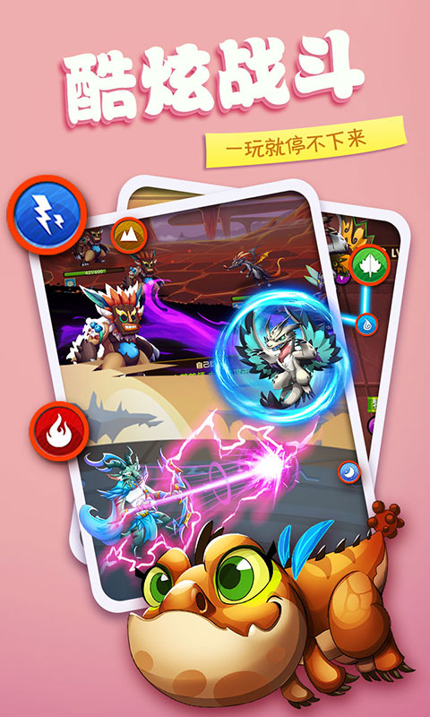 变化的技能系统和自由的特技系统,怪兽战斗主要是技能的比拼,通过培养怪兽来获得新技能,通过收集神奇碎片来合成特殊技能,特殊技能可以自由地搭配到任意怪兽身上,近200种技能,每种技能都跟11中属性相关,属性之间存在克制关系,需要您用策略战胜您的对手,快去体验技能的酷炫吧!