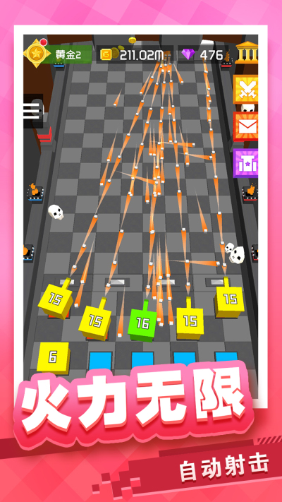 《放置方块塔防九游版》是一款趣味休闲塔防射击类游戏。这款游戏拥有十分清新简约的画风,再加上炫酷的射击特效,带给玩家们非常不错的游戏视觉效果!游戏中玩家需要购买炮台向前方的方块进行射击,两个相同的炮台可合成进阶成更强的炮台。赶快来下载试玩体验一下吧!