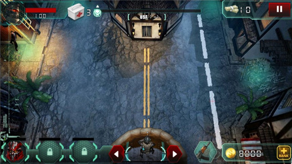 4、智能自适应僵尸的AI,让你挑战和乐趣。使用主武器,副武器,火箭,道具和煤气罐战略性杀僵尸和完成任务的波