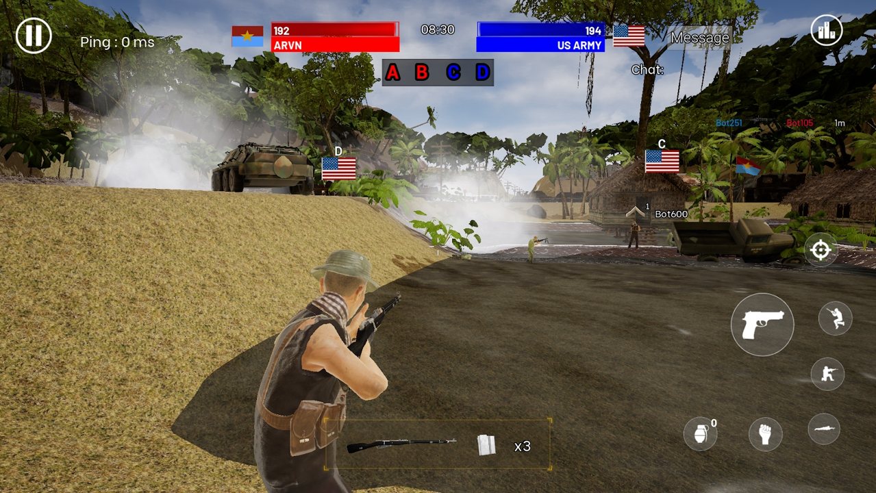 游戏以逼真的越南战场作为背景,精心还原了炙热的森林、灰尘弥漫的村庄和紧张激烈的对抗。玩家将进行各种任务,包括救援、侦察、突袭等,与敌军进行殊死搏斗。游戏提供了多种武器选择,从步枪到机枪,再到火箭筒,让你可以根据战况实时调整装备。还有各种战术工具如手榴弹和烟雾弹可供使用。