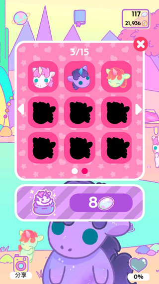 3、通过通关获得的奖励可以用来购买各种漂亮的服装,让你的独角兽看起来很漂亮。