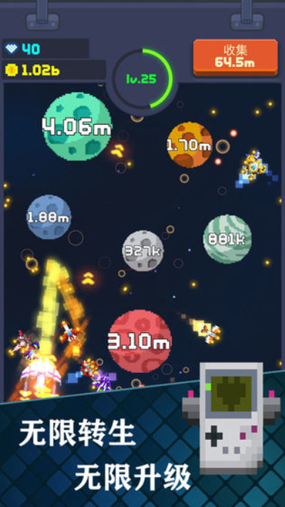 3、根绝玩家摧毁的星球获得分数,分数越高获得的金币越多;