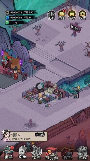 一款神话模拟经营手游。玩家扮演地府管理者,建造各种中国古代神话中所提及到的地府设施建筑,,完美还原古代神话中的阴间渡劫场景,接待来到地府的游客,不断赚取收益扩大经营吧。