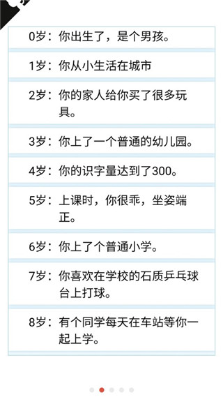1、在游戏中玩家可以体验不同的人生,从出生开始你就可以及你信不同的选择,为你的人生选择不同的属性,从而拥有不同的玩法